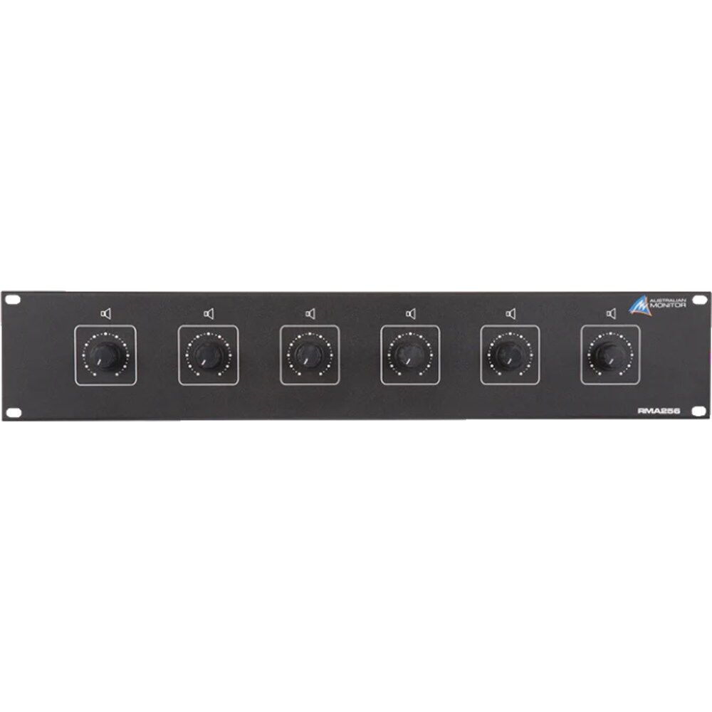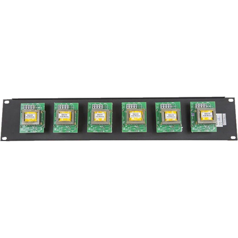 Easy and quick to install 100 Volt line, 6 x 25 watt attenuator mounted on a 2RU Rack Panel with off position and 10 volume steps.