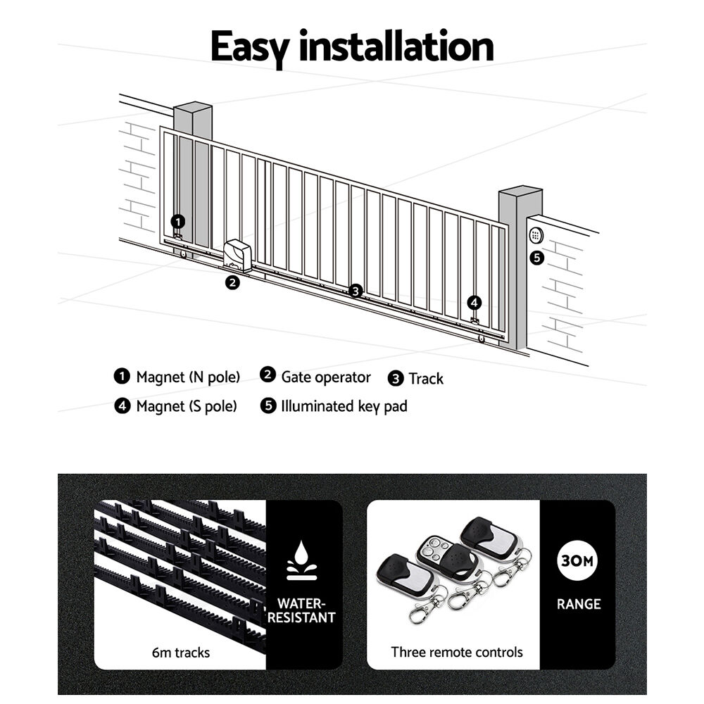 Automatic Sliding Gate Opener Kit 6M 600KG
