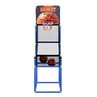 Bring the thrill of the arcade home with your very own Basketball Shooting Machine. The game is made from quality coated steel tubes that are rust-resistant as well as waterproof and stain-resistant printed polyester fabric that is sturdy and durable, so you can use it indoors or outdoors. Come with three different game modes in one: a shooting basketball game in the centre and a sticky ball game on each side. Realistic sound effects make you feel like you're at your local arcade hotspot. The game can be height adjusted for all ages, while safe rounded corners protect children from scratches and scrapes. The LCD automatic score counter provides an accurate and impartial referee for two players, no fighting on the courts! The high net catches stray balls and returns them quickly and easily so you can get back to fun. The triangle frame design and anti-slip feet always keep the game stable. With a foldable, portable and easy-to-assemble velcro design, you can play basketball in minutes, whether at home or on the road. Includes a bonus of four basketballs to always keep the fun rolling. Game on to victory with your very own arcade-style Basketball Shooting Machine