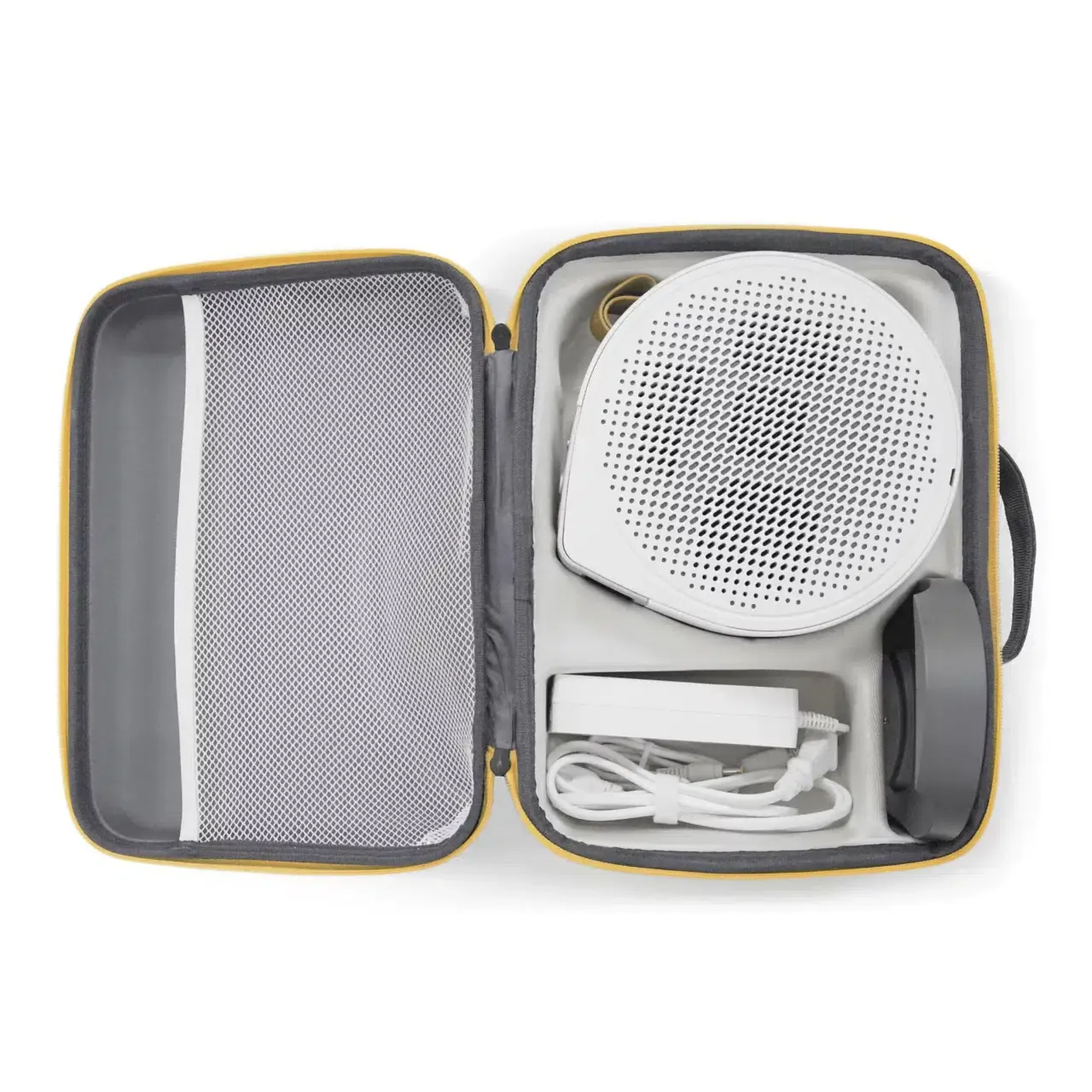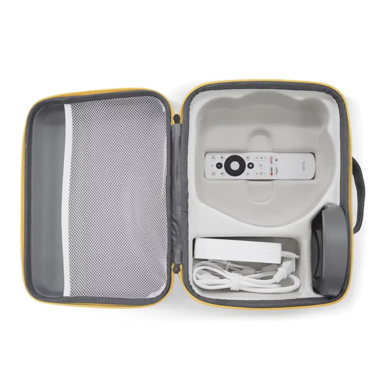 BenQ Carry Case for GV50 Projector - Tailored carry case with dedicated compartments for charger, base, and remote.This protective bag is tailor-made for the BenQ GV50, ensuring a snug fit as if custom-designed. It features dedicated compartments for the charger, base, and remote control, ensuring each accessory is neatly stored.Crafted from semi-waterproof Melange cloth, this durable material is wear-resistant and easy to clean, ensuring long-term reliability.Lined with Eva fabric,it offers superior cushioning and breathability, allowing air circulation to prevent moisture buildup, ensuring your projector stays dry and secure.