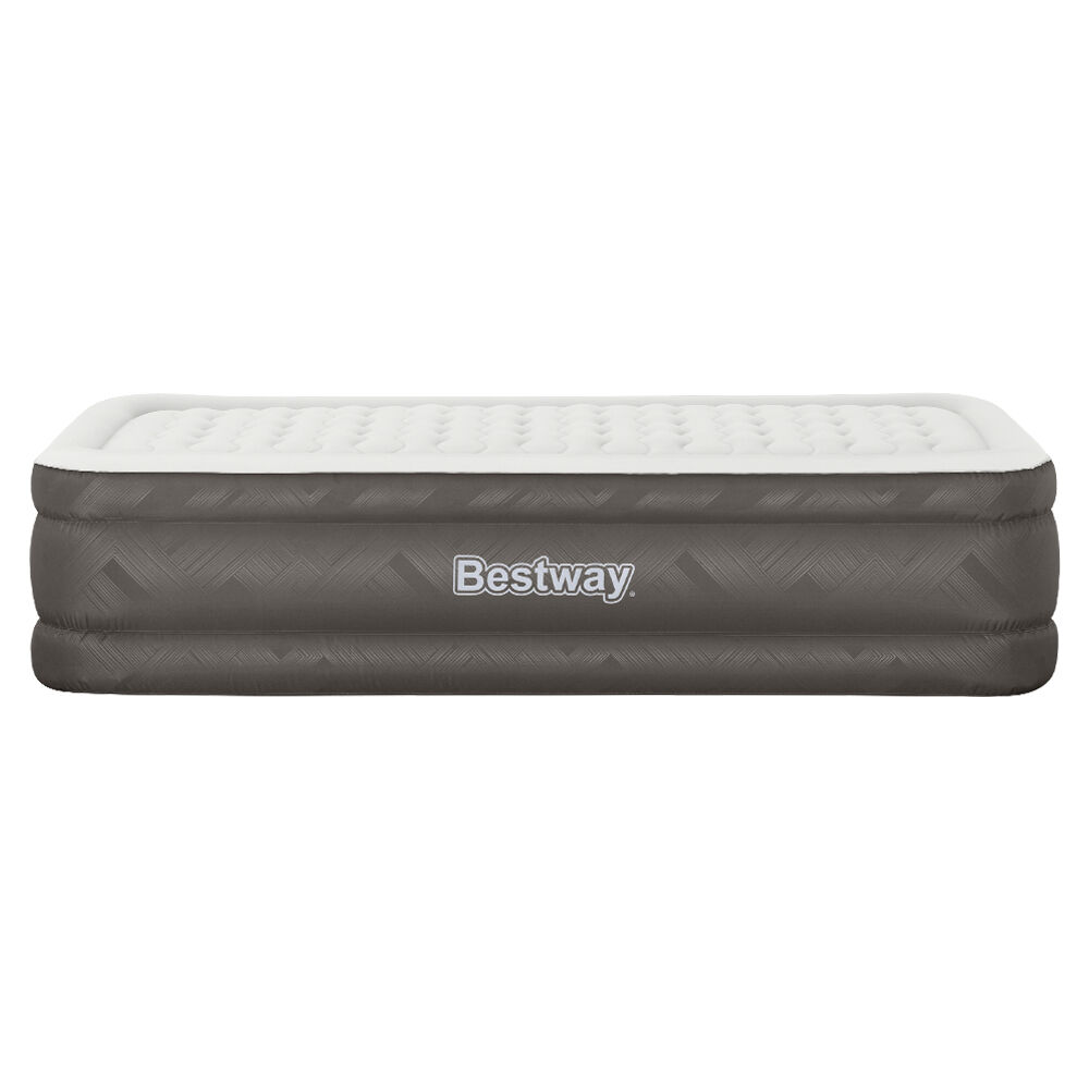Do you need a comfortable bed for your overnight guests or want to enjoy a good night's sleep while camping? Bestway sells a comfortable air bed that can provide superior sleeping accommodation for you and your overnight guests. Featuring a sturdy Fortech� construction, our air bed is suitable for both indoor and outdoor use. It's made from durable pre-tested vinyl with seamless design that ensures durability and longlasting use and prevents roll-off while sleeping. Our air bed has a smooth, flocked velvet-like sleeping surface that makes for cosy and comfortable sleep, and the ultra-fresh� antimicrobial treated surface prevents the growth of odour-causing bacteria, mould, and mildew. It inflates in just 240 seconds due to its rapid inflation and deflation technology and comes with built-in pump for easy operation and your convenience. Portable and easy to store and set-up, you'll have a comfortable bed instantly. It comes with a carry bag for safe and storage. When not required, just deflate, fold, and store it in a carry bag until the next use. Purchase this convenient Bestway air bed today.