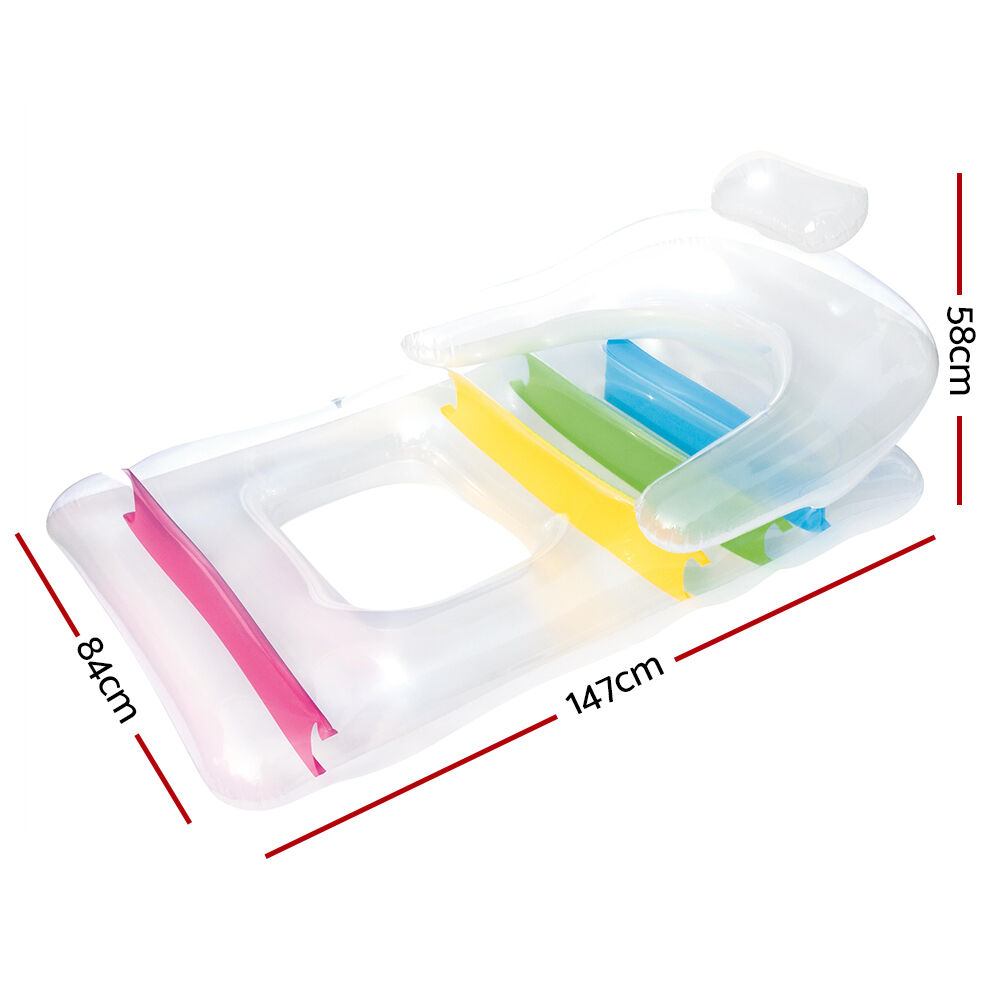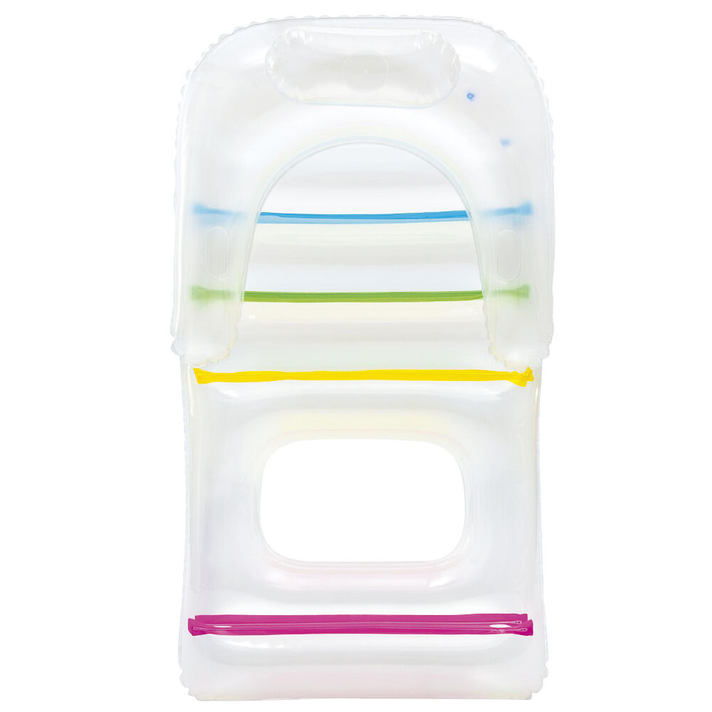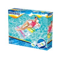 Kick back and chill out on your pool with our Bestway Inflatable Lounge. With its see-through design and colourful interior, our inflatable lounge is guaranteed to provide you plenty of aquatic fun and relaxation. Made from sturdy pre-tested vinyl and a colourful I-beam construction, the inflatable lounge is durable and has two leak-proof air chambers. You can float away for hours on end as the headrest, armrests and backrests provides ultimate comfort. The inflatable lounge is made to last for many summers, but should an accidental tear occur, our supplied repair kit should be adequate to patch the fun back with minimum fuss. So, get ready for a fine summer and soak in the sun and sea in fine style with our inflatable lounge.