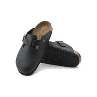 The Birkenstock Men’s Unisex Boston Sandals are a versatile classic that can be worn all year round. They are made from oiled nubuck leather with an anatomically shaped cork-latex footbed, and have a suede footbed lining and EVA sole. The sandals have a deep heel cup, longitudinal and transverse arch support, and a raised toe bar, which allows toes to move more naturally.