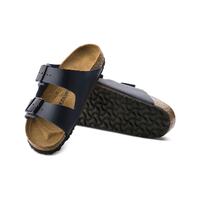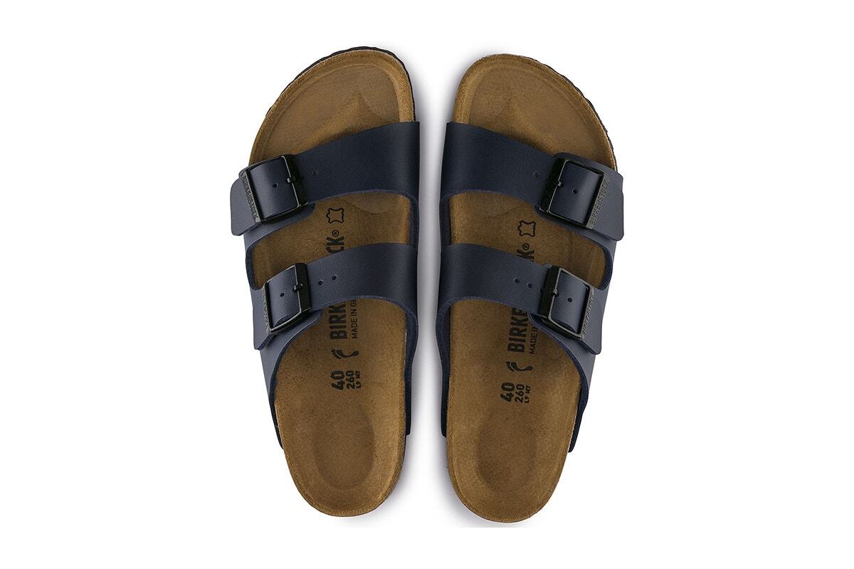 The sole consists of multiple layers, which are glued together. The bottom layer is made of a highly durable, shock-absorbing material that protects your feet, joints and vertebrae when walking. The second layer consists of a soft foam pad that ensures even more comfort. The top layer is made of EVA. The Birkenstock Unisex Arizona Birko-Flor Sandals have two straps that are adjustable with a metal pin buckle. The Birko-Flor upper is made of a skin-friendly, easy-to-care-for PVC that is breathable and lined with a soft fleece. The sandals have a flexible leather lining that is gentle on the skin and an EVA sole that is cushioned and shock-absorbing. The deep heel cup and raised toe bar offer balance and support.