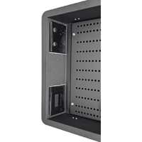 The AV Wall Box is designed to be recessed into the wall cavity behind a TV.