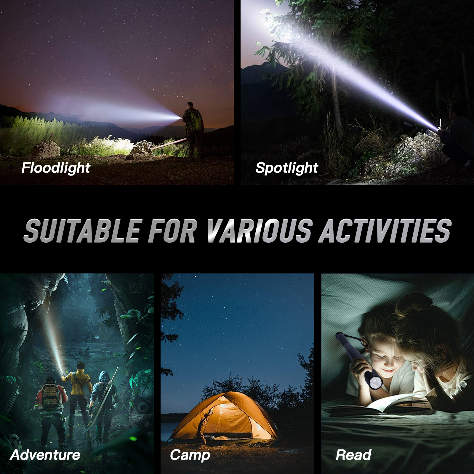 This military-grade torch has three modes including high, low, or strobe options. It's 35cm long x 3cm diameter while weighing only 100g, so it perfect for camping or any other nighttime activities.