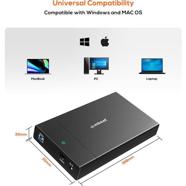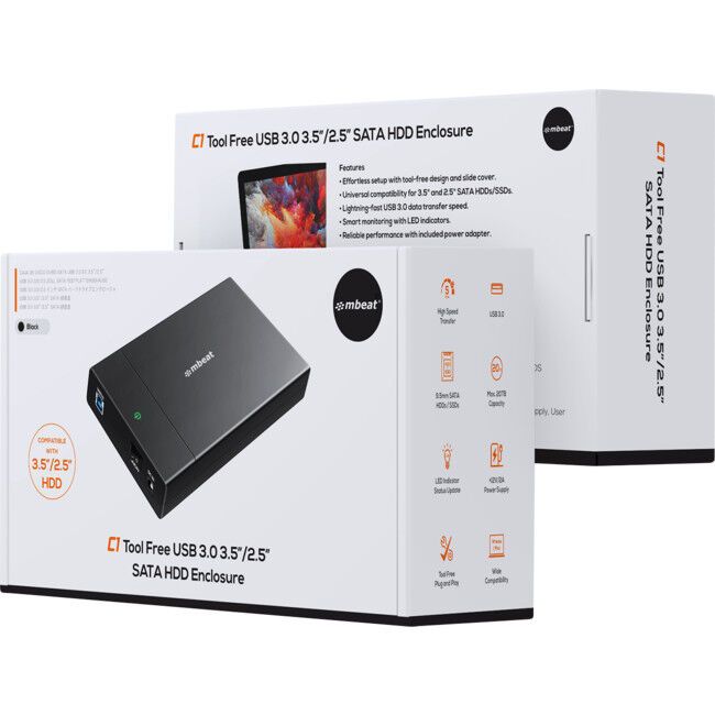 mbeat® C1 Tool-Free USB 3.0 3.5' & 2.5' SATA HDD Enclosure - Black Data Speed: Maximum up to 5Gbp Product Weight: 121g DC Power: +12V/2A Power Supply