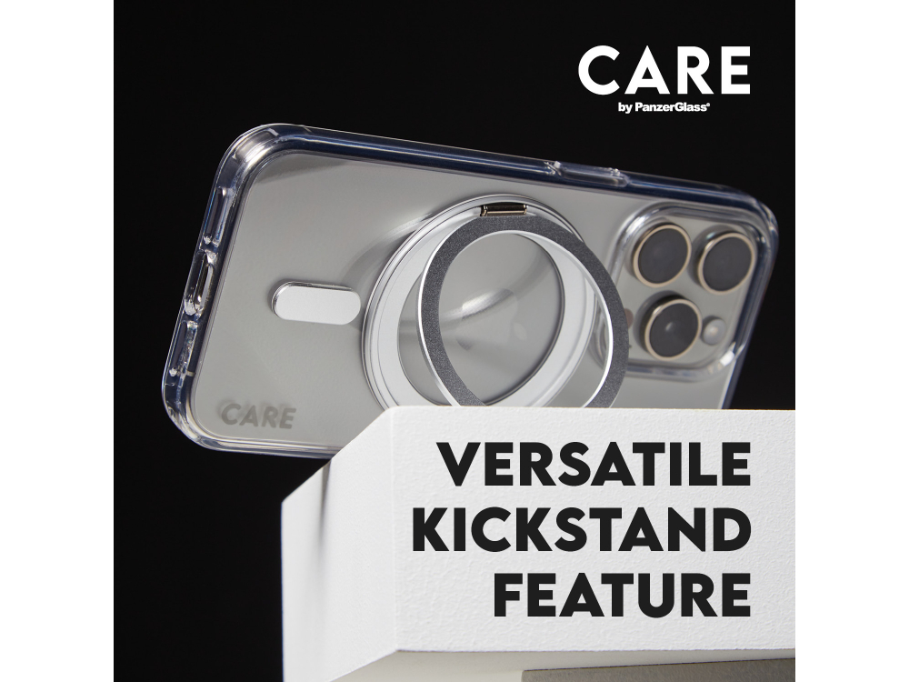 Overview:Care’s most anticipated new products is finally available! Every angle and corner has been drop-tested at 4.8 meters. Made from recycled plastic this case offers phenomenal protection wireless charging and MagSafe compatibility and includes our 1 Year Anti-Yellowing guarantee – no questions asked. This slim lightweight protective kickstand case offers everything you want in a phone case. Its practical design features a versatile kickstand for hands free viewing both vertical and horizontal. Now you or your kids can FaceTime stream series watch movies and do yoga with ease anywhere anytime. and hands free. It even includes enhanced camera protection to safeguard your selfies and photos.|Features:MagSafe compatible - Works perfectly with MagSafe for hassle-free wireless charging. 4 x Military Grade Standard (MIL-STD-810H) - Tested with a drop height of 4.8 meters or a rock-climbing-or-working-on-a-scaffolding-and-accidently-dropping-my-device kind of height. Scratch resistant - Protects your device from scratching caused by the hazards of everyday life. Shock resistant - Keeps your device safe from your everyday fumbling dropping and screen cracking. Full access to all functions - Protects your device while still providing easy access to all button controls. Anti-yellowing - Designed specifically to prevent yellowing even after long time use. Recycled plastic - Made of 100% recycled plastic for a better tomorrow.|