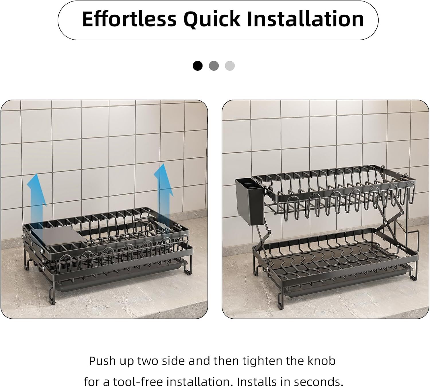 CARLA HOME 2-Tier Large Dish Drying Rack with Drai