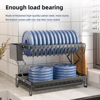 CARLA HOME 2-Tier Dish Drying Rack with Drainage Tray, Utensil Holder, Cup Hooks & Cutting Board Rack for Kitchen (Black)