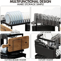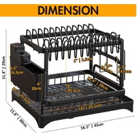 CARLA HOME 2-Tier Dish Drying Rack with Drainage Tray, Utensil Holder, Cup Hooks & Cutting Board Slot for Countertop Kitchen Storage (Black)