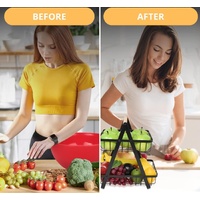 • STURDY METAL FRAME WITH WOODEN HANDLE: Built with a durable powder-coated steel frame and a stylish wooden handle, this fruit stand adds both strength and charm to any modern kitchen setup. Easy to move and clean with a soft cloth.