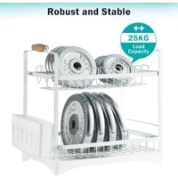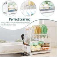 CARLA HOME 2-Tier Large Dish Drying Rack with Drainboard, Utensil Holder, Glass Hooks & Cutlery Storage (White)