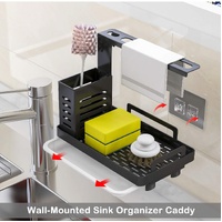 CARLA HOME Kitchen Sink Caddy Organizer with Sponge, Soap & Brush Storage and Rag Rack, Drain Tray & Utensil Holder