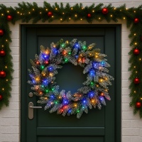 Christabelle 76cm Christmas Wreath Snowy Stamford Spruce with LED Lights Front Door Decoration Ornament