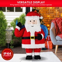 Bring a festive glow to your holiday season with this delightful Christmas Santa display. Perfect for both indoor and outdoor settings, it showcases 90 LED lights in a warm white hue, creating a cosy and welcoming ambience. Equipped with an outdoor electric adaptor, this cheerful Santa is prepared to spread joy and holiday cheer in any area!