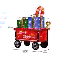 Roll in the cheer with this festive Christmas cart display, packed with presents and a giant candy cane. Lit by warm white LED lights and crafted on a sturdy wire frame, it's ideal for indoor or outdoor use. A bright, joyful centrepiece to complete any holiday display.
