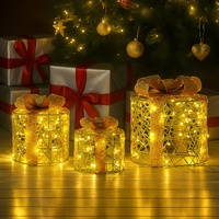 Make a stylish statement this holiday season with this set of three cylindrical Christmas gift boxes. Featuring warm white LED lights, glittering gold bows and a beautiful beaded finish, these boxes bring charm and sparkle to your festive space. Powered by separate battery boxes, they can be grouped together or arranged individually for an elegant and versatile display.