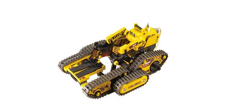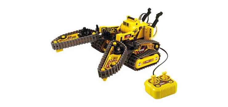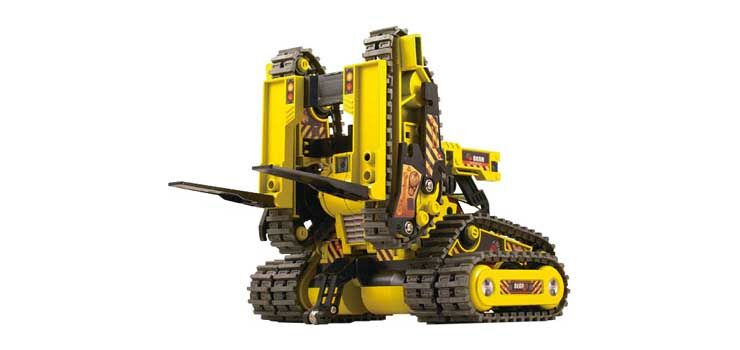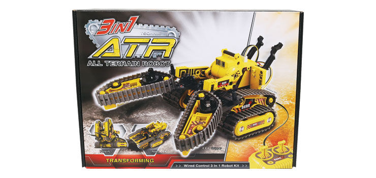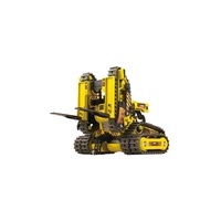 Great fun for the kids & students to build and play with! This single kit can be built (and re-built) three ways to create a forklift, all-terrain rover or gripping pick up machine. Tank like tracks allow it to roam over any type of surface. The wired remote control can command the unit to move forward, backward, turn, grip and lift. Lifting capacity 100g. Includes wired remote control.