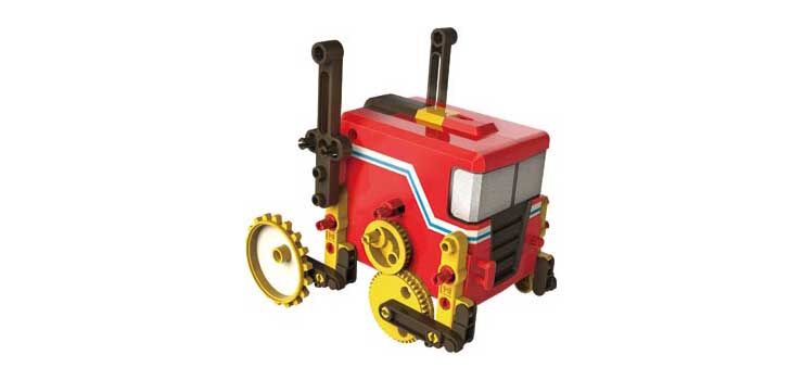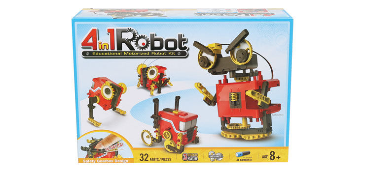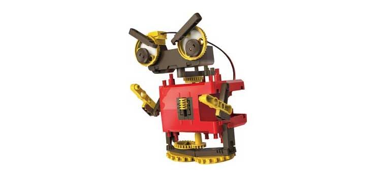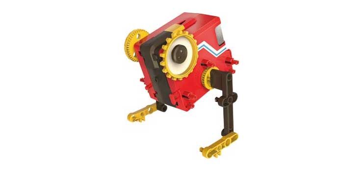 Includes detailed instructions to assemble all the included parts into one of four different designs. Each design shows different methods of robotic movement, teaching kids about geared movements in a practical and fun way. No soldering required.
