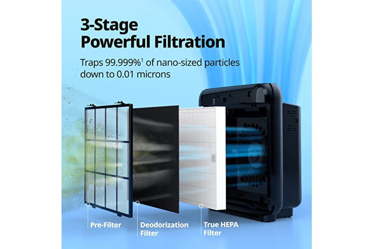 The filter set is specifically designed with a size of just 0.3µm, making it small enough to capture the smallest particles, while also providing a longer lifespan for your air purifier. The Coway Airmega Air Purifier Filter set is a 3-stage filtration system that is specifically designed to remove 99.97% of airborne allergens, odours, and gases. It includes a True HEPA filter to capture ultrafine particles such as viruses, bacteria, fungi and pollen with an antimicrobial treatment for maximum air purification, as well as two carbon pre-filters to remove odours and gases from the air. The filter set is only 0.3µm in size and provides a longer lifespan for your air purifier. This powerful purifier is perfect for any home or office environment.