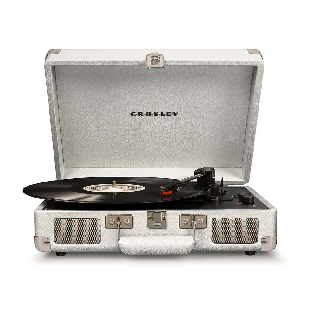 Crosley Cruiser White Sands - Bluetooth Portable Turntable - Some say you can’t improve on a classic, but we are here to prove them wrong with the Crosley Cruiser Bluetooth Portable Turntable. Features Bluetooth output functionality, so you can listen to your favourite records on the speaker system of your choice! The upgraded Cruiser design retains its charming portable suitcase shell in a rainbow of colours, three speeds and pitch control for all your listening needs, a Bluetooth receiver and built-in speakers so you can listen on the go — but with the added option to pair it with your favourite external speakers via Bluetooth output.