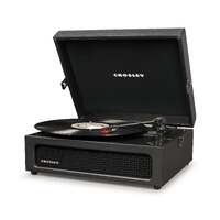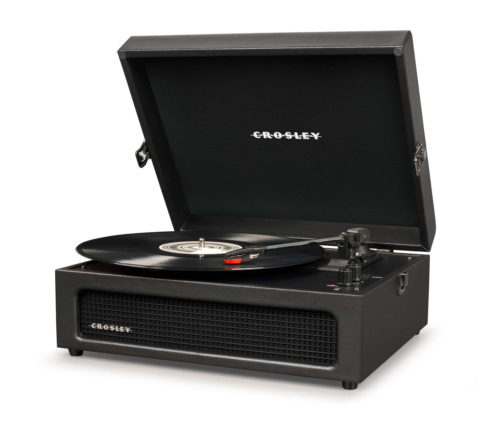 The Crosley Voyager Bluetooth Portable Turntable in black, bundled with the Crosley Record Storage Display Stand, is the perfect way to enjoy analog music in a modern world. With a vintage-inspired design, this lightweight turntable can spin records at 33 1/3, 45, or 78 RPM, or connect wirelessly through Bluetooth to play digital music. Use the pitch control to adjust the speed and connect to your existing sound system or bigger speakers through RCA outputs for an enhanced sound experience. Need a place to display your records? The minimalist Record Storage and Display Stand, made of solid wood, holds 20-30 7” or 12” records and requires minimal assembly. This stand is the perfect way to browse and display your record collection with ease.