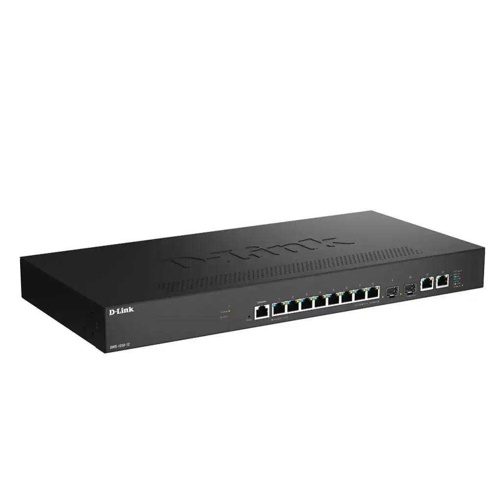 D-Link DMS-1250-12, 12-Port Multi-Gigabit Smart Managed Switch with 8 (2.5 G), 2 (10 G) BASE-T and 2 (10 G) SFP+ Ports.The DMS-1250 Series is D-Link's newest family of Multi-Gigabit Ethernet smart switches. It provides multi-Gigabit connectivity,Power over Ethernet (PoE) capability,multiple management interfaces and advanced layer 2 features.The DMS-1250 Series provides a high-performace solution to expand your network and adapts to your business needs.