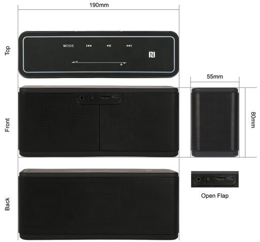 This portable wireless BT speaker is equipped with cutting-edge DSP and speaker driver technology, allowing it to generate an impressive volume of high-quality music from a compact package. The dual passive radiators generate a warm and powerful bass frequency. The unique custom DSP chip improves audio clarity and reduces distortion even at high volume levels. The speaker also has NFC and Wireless BT 4.2 for simple pairing and near-instant reconnection. The speaker has a big 5200mAh battery that provides up to 10 hours of playback on a single charge. Prepare to be astounded by the stunning sound quality of this compact device, which surpasses that of larger and more expensive models. This little gadget provides a totally immersive audio experience. The speaker includes a AC wall USB charger, USB charging cable and 3.5mm audio lead. Dimensions: 190x55x80mm.