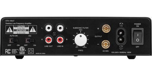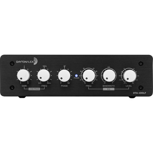 The DTA100-LF is a stylish desktop amplifier designed by Dayton Audio specifically for low-frequency application. This low profile amplifier features an ultra-stable DC power supply and optimally designed Class-D circuit topology to give you 100 watts at 4 ohms. Use the three built-in filters to optimize the output and power your drivers to their full capability. After dialing in your tone, the DTA-100LF even manages its own power state with the auto-on feature to function as a true set-and-forget unit.