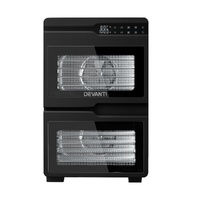 Achieve professional-quality food preservation with Devanti 's premium dehydrator. The dual-zone stainless steel design ensures efficient drying across 12 food-grade trays, while the LED panel lets you precisely control temperatures (35°C–80°C) and timers (up to 48hrs). Monitor progress through the transparent glass door with interior lighting, perfect for fruits, meats, herbs, and jerky. Includes bonus fruit roll sheets and mesh trays for delicate items. Safety features like overheating protection, heat-shielded vents, and anti-slip feet ensure worry-free operation. Commercial-grade construction meets easy cleaning – all trays and accessories are dishwasher-safe..