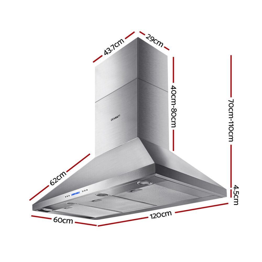 Thick smoke and steam from your cooking. Stifling odours all around. And the hood's not doing its work in clearing the mess. Yes, it's the bane of every conscientious chef who wants the cooking environment to be as pleasant as possible. And that wish has come true with our Devanti 1200mm wall mount range hood.