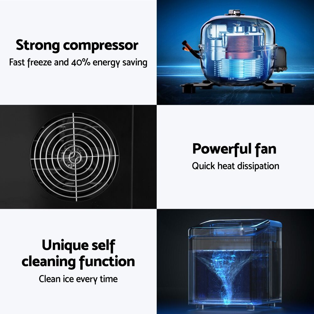 Need ice cubes on demand fast and without the hassle of driving to the nearest servo or supermarket to get some? Well your wish has just come true with the Devanti Ice Cube Maker. Capable of making 9 ice cubes in every 6 minutes depending on the water and ambient temperatures, the portable ice cube maker can also do three different sizes of its crystalline bullet-shaped ice cubes. That works out to about 15kg on demand over a 24-hr period. Just select your size option on the LED control panel, set the time and press start. You can easily monitor the water level or when the ice cube container is full and there is an automatic indication when the water level is low. Other great features include a large heat dissipation fan for excellent cooling, a 19.5-hour timer setting, convenient water drainage plug and non-slip feet for a stable operation. Not least, the ensemble works ever so quietly and complies with current Australian standards.