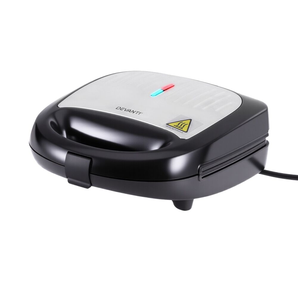 Start your mornings right with the Devanti 3-in-1 Sandwich Maker, a versatile appliance designed to prepare delicious meals in minutes. This multifunctional unit works as a sandwich maker, waffle maker, and panini press, giving you more options without cluttering your kitchen. Equipped with an 850W high power heating system, it heats up quickly and ensures fast, even cooking. The double grill plate and double-sided baking design deliver crispy sandwiches, golden waffles, and grilled beef or sausage every time.