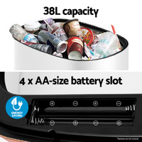 Keep your home clean, tidy and germ-free with a Devanti Motion Sensor Bin. Activated by just the wave of your hand (within a 20cm range), the motion sensor bin makes it easy to dump your trash cleanly and hygienically. With a large 38L capacity, you won't need to clear your bin immediately to make room for more trash. The fingerprint-resistant black steel surface keeps your kitchen looking cool and sleek. No more worrying about the bin liner moving out of position with the convenient bag retaining ring. The soft opening and closing make the bin completely noise-free. The lid also prevents any odours from getting out, so you can dispose of your trash hassle-free. Powered by four AA batteries, you can turn on the power switch and enjoy using the bin. Fight common kitchen bacteria and keep your home clean and clear with a Motion Sensor Bin from Devanti.