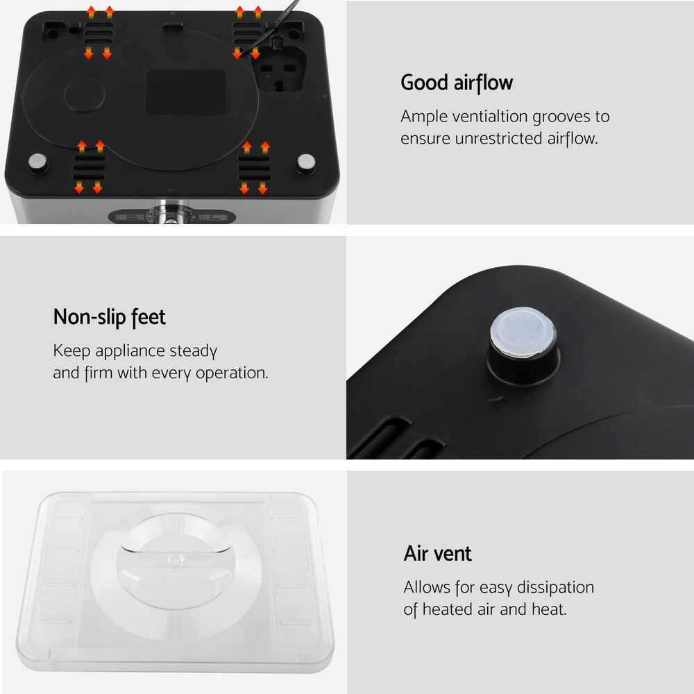 Making your favourite healthy dried foods snack is easy with the Devanti Stainless Steel Food Dehydrator. Simply cut and place your fruits, vegetables, meat or more onto the food-grade stainless steel trays, set the temperature using the knob controls and let the machine do its magic. The powerful fan, ample ventilation grooves and a top air vent provide 360-degree circulation and adequate heat dissipation. The transparent door allows you to keep track of the entire drying process from start to finish. The stackable design with adjustable trays allows you to dehydrate foods of different shapes and sizes. The dehydrator works silently with little energy consumption and has built-in overheating protection to ensure nothing goes wrong with the drying. After completion, simply wash the trays by hand or with the dishwasher. Studies have shown that dried food retained as many nutrients as its fresher counterparts and has even more concentrated flavours. So let the Devanti Stainless Steel Food Dehydrator help you discover a whole new realm of healthy eating today.