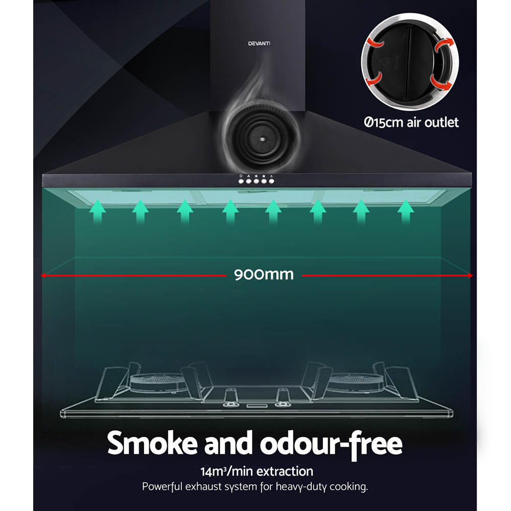 Devanti 900mm Range Hood 90cm Rangehood Stainless