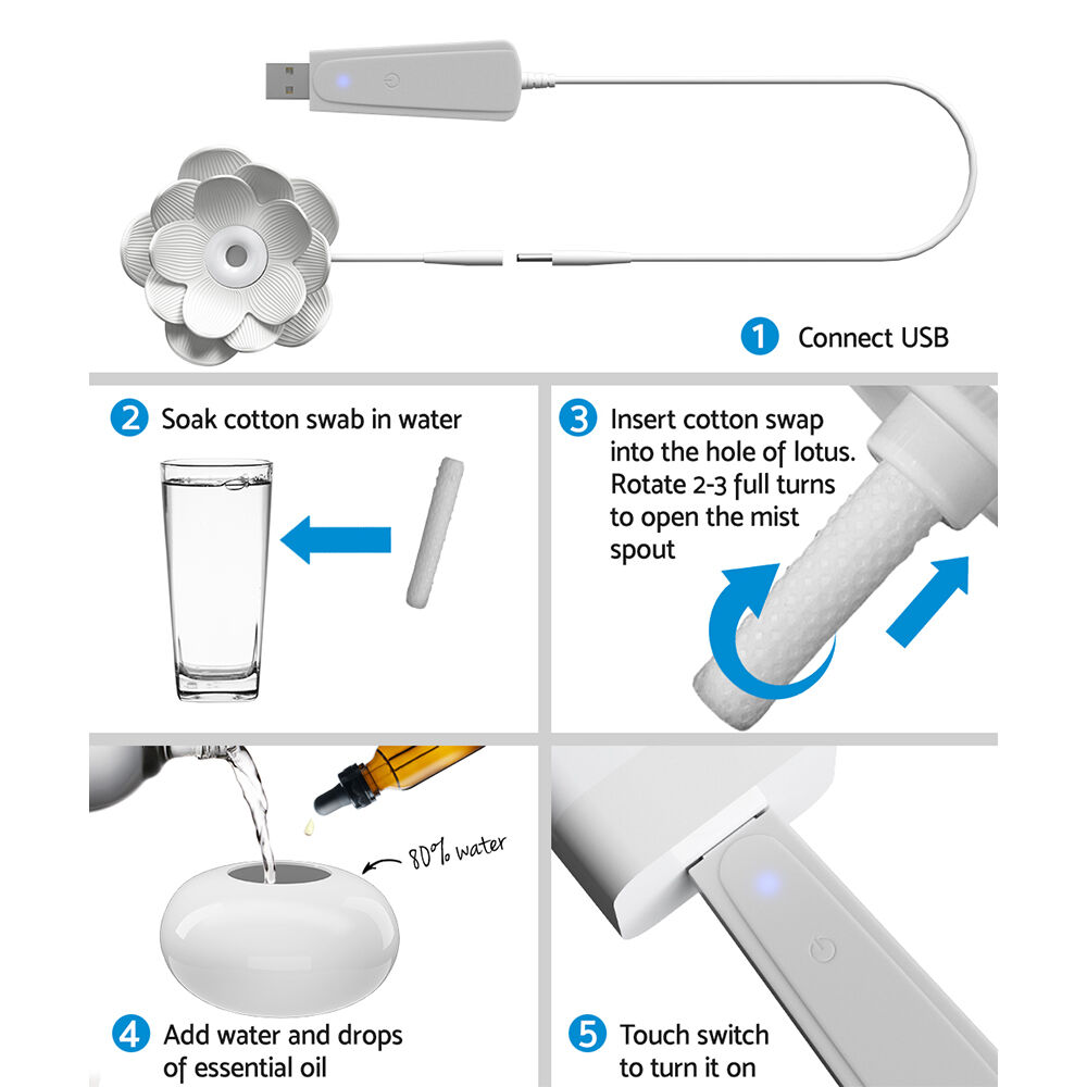 Relax and absorb calm and soothing vibes at the touch of a button with a Devanti Ultrasonic Aroma Diffuser. Delicate white ceramic is carefully moulded into an elegant lotus shape for this Bauhaus-inspired piece. Delightfully aesthetic, the diffuser works in three ways: as a humidifier, purifier, and aromatherapy device. The device uses ultrasonic technology to turn your favourite essential oils and water into a smooth, cool, aromatic mist to help restore and maintain your aura. The diffuser comes with two mist frequency adjustments, two levels of brightness and 2 timer settings to meet your exact preferences. The low water auto shut-off automatically detects water levels and turns off the device when empty, so you don’t have to worry about damaging the device with prolonged use. Bring life back to stale air, cover stubborn odours, and revitalize your home with a Devanti Ultrasonic Aroma Diffuser.