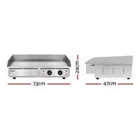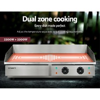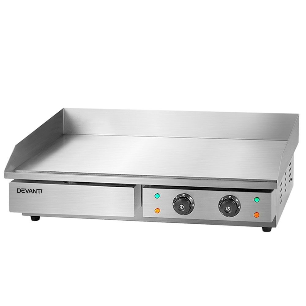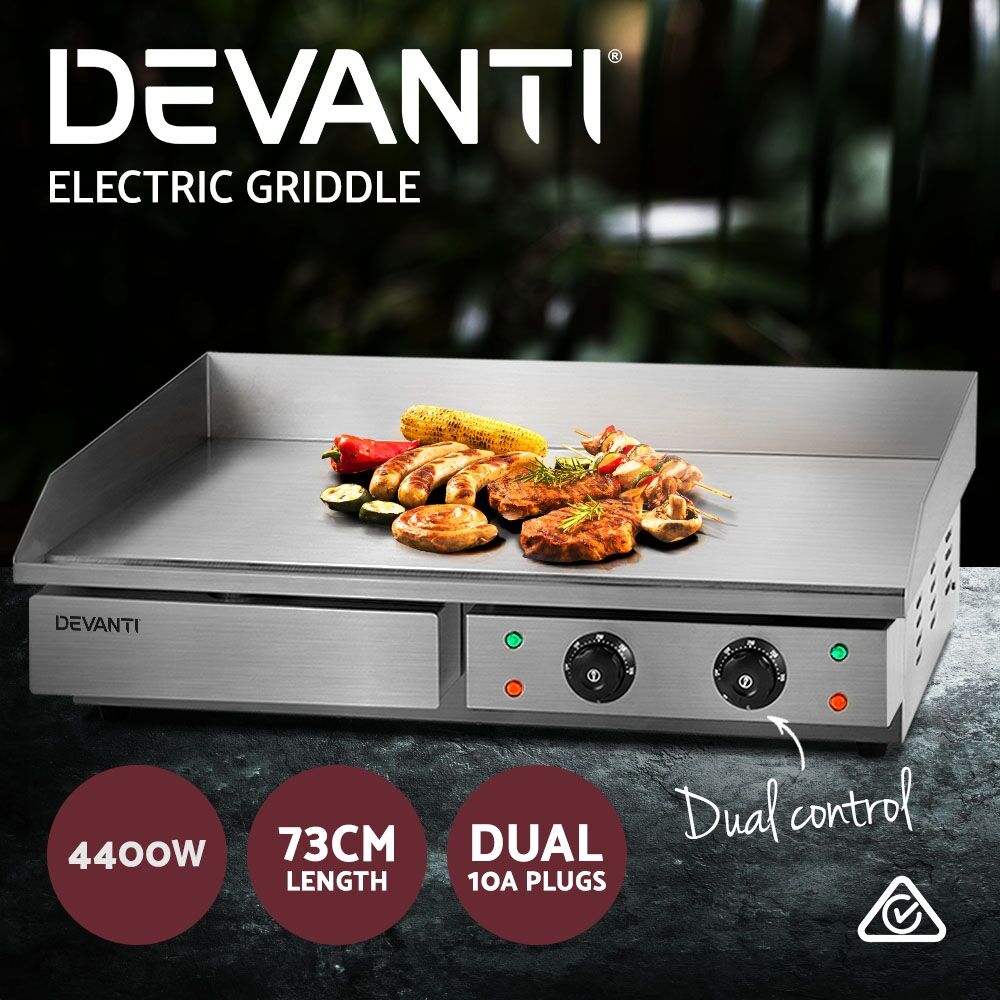 Make cooking effortless with a Devanti Electric Griddle. It features a large, flat cooking surface that can be divided into two separately controlled cooking zones, so you can cook large amounts of food at the perfect temperature every time. The griddle has a temperature range of 50-300 degrees and the S-shaped heating elements heat the food-grade stainless steel surface fast and evenly for a uniform cook. A top splash guard protects you and your surroundings from oil splatter, while an overload circuit breaker prevents short circuiting and non-slip feet keep the griddle stable on your benchtop. The entire unit is easy to clean: the stainless steel surface is smooth and anti-rust, while the removable drip tray can be cleaned quickly and easily. Enjoy cooking wherever you are with a Devanti Electric Griddle.