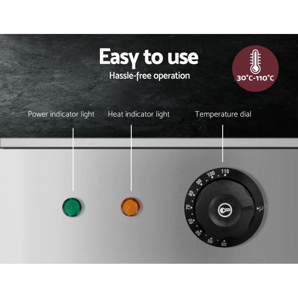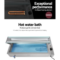 Keep pre-cooked food at perfect ready-to-eat temperatures for extended periods or cook delicate foods such as sauces and mousses with our Commercial Bain Marie. Just fill the removable water bath with water up to about 3cm above the heating element and place the three removable food-grade stainless steel pans on top. Set the temperature between 30°C and 110°C with the rotary dial and the bain marie heats up the water to generate gentle and even heat that keeps the food warm without sticking, burning or drying out. The bain marie comes with additional useful features such as detachable tempered glass doors for easy cleaning, drain tap to easily drain excess water and non-slip rubber feet for a firm stand. Perfect for commercial settings such as buffets, takeaway eateries and catering, or even at home for large parties, our bain marie is sure to make a lovely dining experience for everyone.
