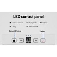Do you feel trapped and stuffy at home? Do you have trouble with mould and mildew? The problem may be your air quality. Let our Devanti Dehumidifier rid you of strong odours, dust and high humidity in your home. The 2-in-1 device acts as both a dehumidifier and an air purifier to eliminate VOCs and other unwanted particles in the air. A washable air filter allows you to effectively filter every time without having to change parts. With its efficient compressor, you can eliminate 12L of water per day without overspending on electricity. With a 24-hour timer, you can set and forget as your device automatically cleans your air quietly and efficiently. The handy LED screen will always keep you informed. Drain the recaptured water into the 2.1L water tank or drain it where it needs to go with the included 30cm water pipe. Finally, the entire device is set on smooth castor wheels and features a convenient handle for portability. Stop suffering and start breathing easy again with a Devanti Dehumidifier.