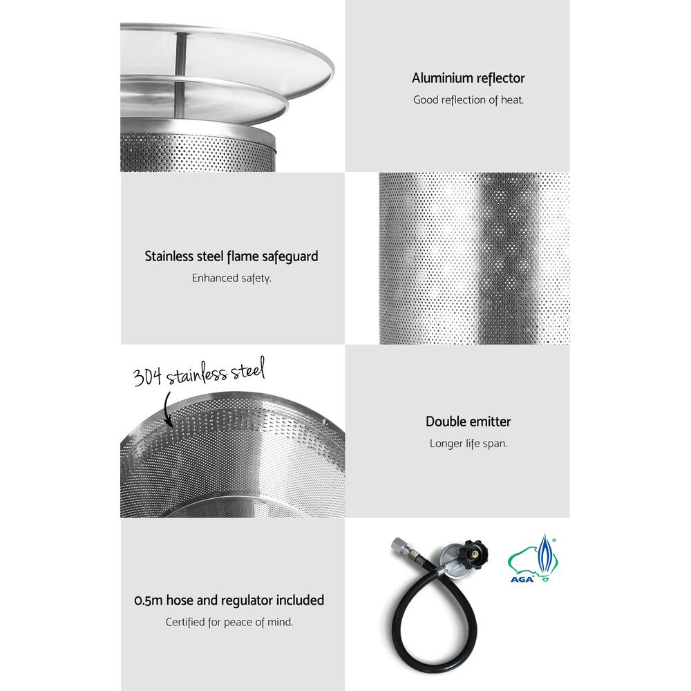 Absolutely great for use at cafes and restaurants with al fresco dining options or when you decide to dine under the stars at home, the Devanti Gas Patio Heater is a great addition to warm up any occasion in the cool night. Get yours today.