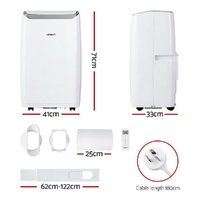 Experience versatile climate control with the Devanti 14000 BTU Portable Air Conditioner. This 3-in-1 unit cools, dehumidifies, and circulates air efficiently. Enjoy smart features like WiFi app control, remote operation, and sensor touch panel. The quiet smart sleep mode ensures restful nights, while the swing function evenly distributes airflow. Easily move it with built-in handles and castors. Includes window exhaust kit for simple setup and removable filter for maintenance. Great for hot summer days!