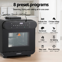 Experience effortless cooking with our Devanti air fryer, featuring 8 preset programs, touchscreen controls, and 360-degree air circulation. It features advanced steam generation to keep food moist, a touch-sensitive control panel for easy operation, and a non-stick pan for hassle-free cleaning. Equipped with a safety auto-off feature, it combines convenience with peace.