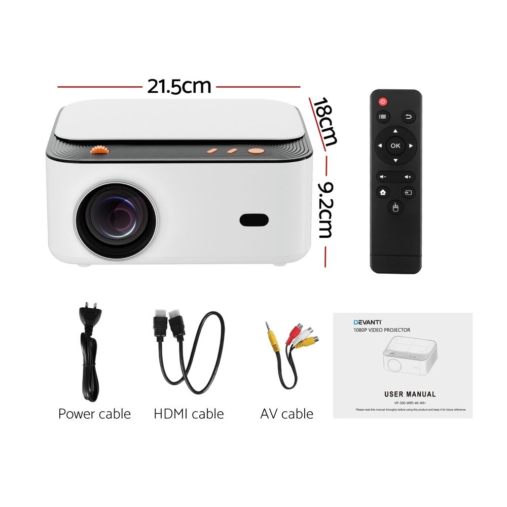 Devanti Portable Wifi Video Projector 4K 2.4G/5G H