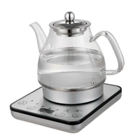 Cordless glass kettle, included tea infuser, digital touch-button base, 360-degree base rotation, automatic switch off, boil dry and overheat protection, five quick-start temperature control settings, keep warm mode 15min - 12hours, adjustable temperature thermostat 40°C-100°C for keep warm mode, adjustable power system between 50W – 800W, delay start 30min - 12hours