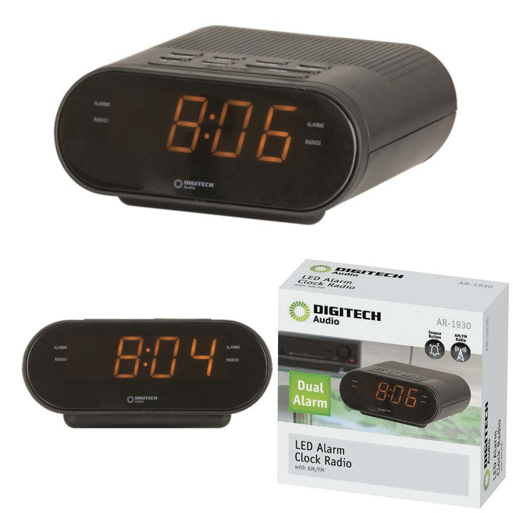 This compact alarm clock will wake you up on time every day to the sound of your favourite AM/FM radio station and features dual alarm functionality with snooze function. An AM/FM radio is built in, with digital tuning and an integrated antenna. Optional 2 x AAA (not included) battery backup for time and alarm settings in case of blackouts during the night. Mains powered with a 1.3m lead.