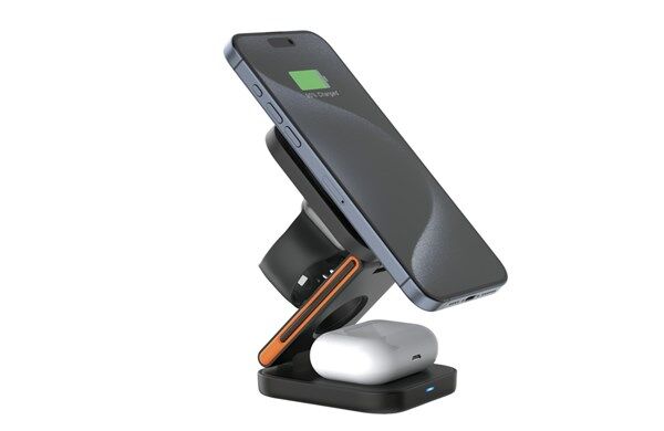 This 3-in-1 wireless charger powers your phone, earphones, and watch with ease. Compact and foldable, it saves space in your bag while delivering fast, reliable charging on the go.