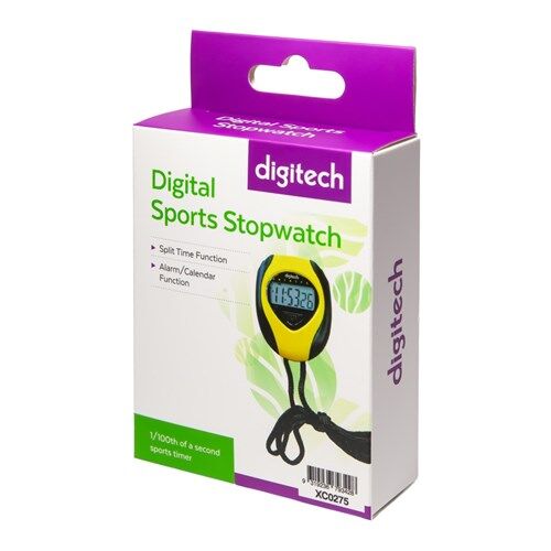 This handy sports stop watch will be a useful addition to any sports bag. Not only does it measure elapsed time for up to 24hrs, it also features a split time (lap) function in addition to alarm and calendar functions.