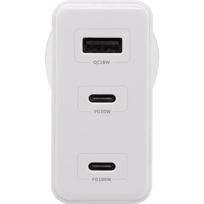 • This SMPD100C charger combines maximum power with intelligent design. Its 100W USB-C output rapidly powers up your devices, while the 3-in-1 multi-port design (2x USB-C, 1x USB-A) lets you charge several devices simultaneously without sacrificing speed.